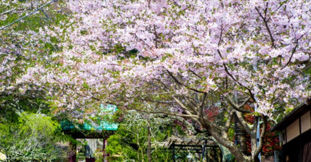 The temple features a mix of Somei Yoshino, Yamazakura, and weeping cherry trees. The contrast between the pink petals and the vibrant green moss and bamboo groves is striking. This location was a favorite residence for famous Japanese artists and film directors. It is a quiet alternative to the busier shrines in central Kamakura.