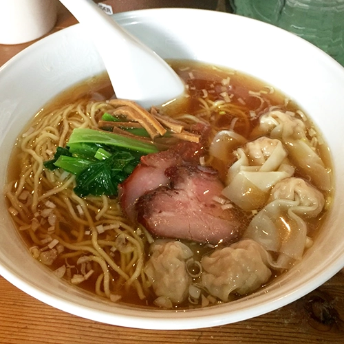 The clear soy-based broth is light yet deep, perfectly complementing chashu pork and wontons.