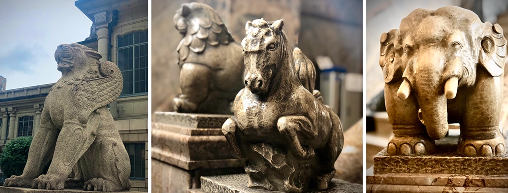Dr. Chuta Ito was known for his playful habit of incorporating mythical beasts and animals into his buildings. Throughout the temple grounds, you can find sculptures of winged lions, elephants, oxen, peacocks, and even the “Four Sacred Beasts” (like the Blue Dragon and Vermilion Bird). Searching for these hidden figures feels more like exploring an art museum than a traditional temple.