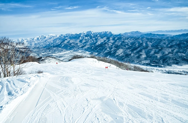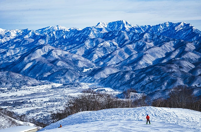 Located on an independent peak, it offers a 360-degree panorama of the Japanese Alps. On clear days, you can see Mt. Fuji while you ski. “Skiing with a clear view of Mt. Fuji is an unforgettable bucket-list experience.”