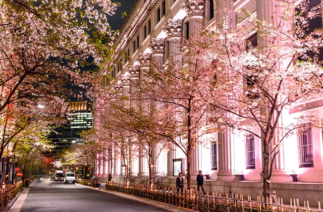 This street features elegant Sakura trees set against the backdrop of historic stone buildings in the Nihonbashi district. Starting mid-March 2026, the “SAKURA FES NIHONBASHI 2026” will take place. At night, the entire street is bathed in pink light, creating a sophisticated and romantic urban Sakura experience perfect after a day of high-end shopping.