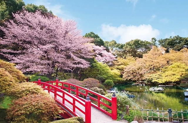 This hotel boasts a 400-year-old Japanese garden spanning 10 acres, where 58 cherry trees of 19 varieties bloom in succession. From March 1st to April 19th, 2026, the garden will host a spectacular evening illumination event. With exclusive Sakura-themed menus and private viewing options, it offers the ultimate luxury Sakura experience for discerning guests.