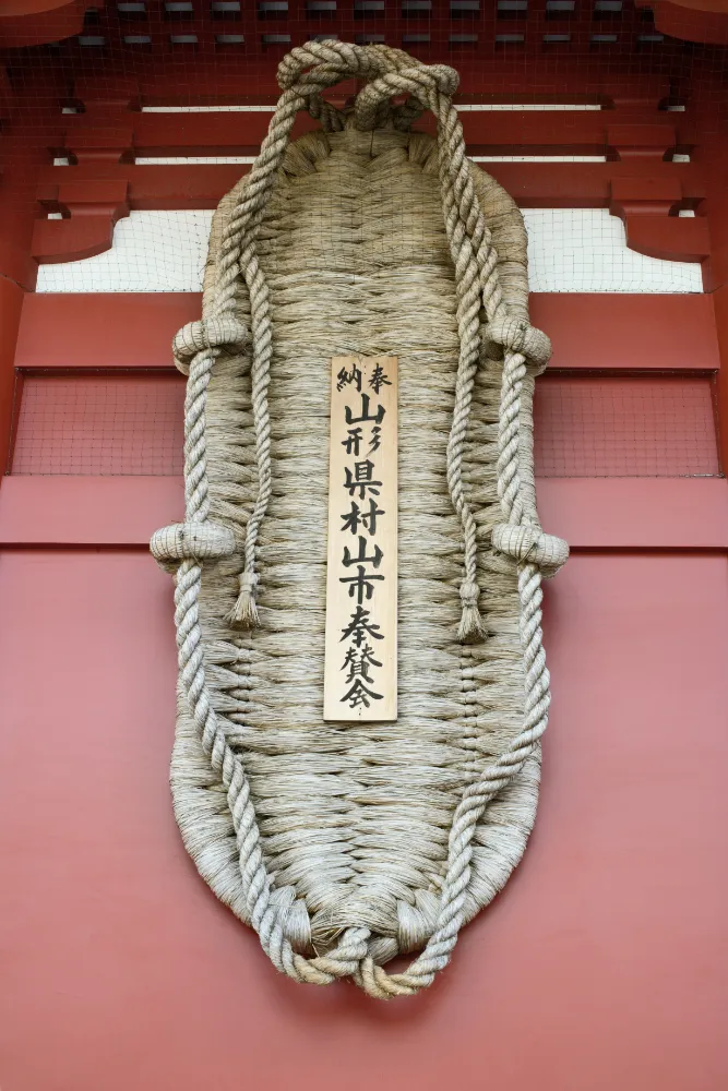 Behind the gate, you will find enormous straw sandals displayed as offerings. These symbolize protection against evil and represent strong spiritual guardianship.