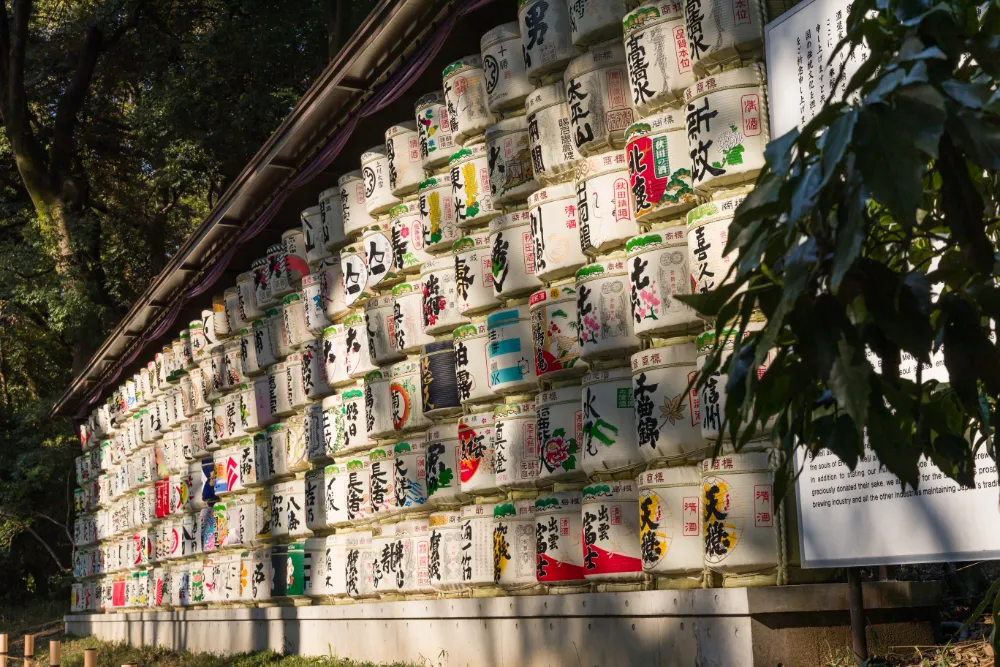 Along the South approach, a large number of sake barrels donated by breweries across Japan are stacked. These are offered to the gods with gratitude and prayers. Emperor Meiji promoted Western culture and especially liked wine, so French wine barrels donated from France are lined up on the opposite side. This unique blend of Japanese and Western elements makes for an interesting sight.